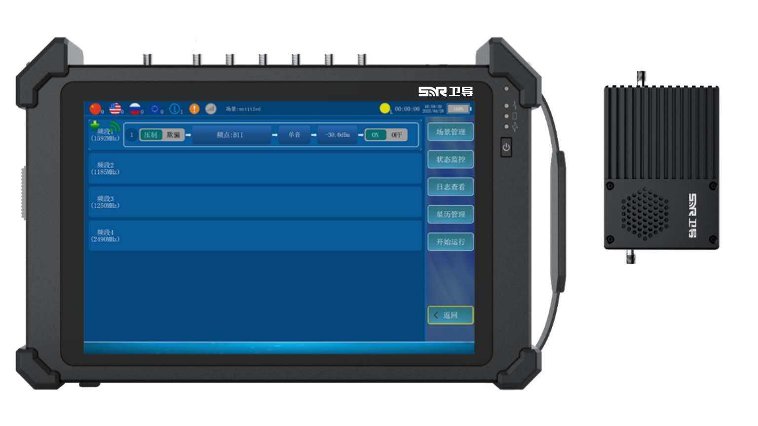 支持全频段导航信号压制,可生成多种干扰样式,实现信号覆盖与阻断。