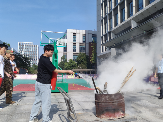 讲解结束后,部分员工分组参与了灭火实操训练。面对模拟火源,员工们在李老师的指导下,进行了手提式干粉灭火器及消防表盘的实操演练,掌握了使用不同种类消防器材进行灭火的基本技能。