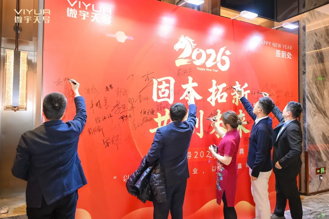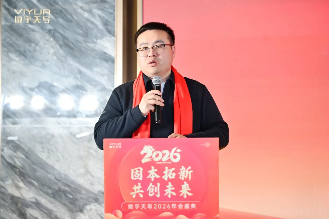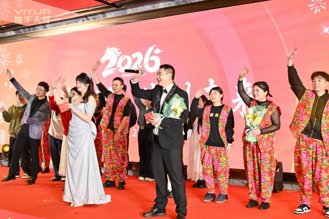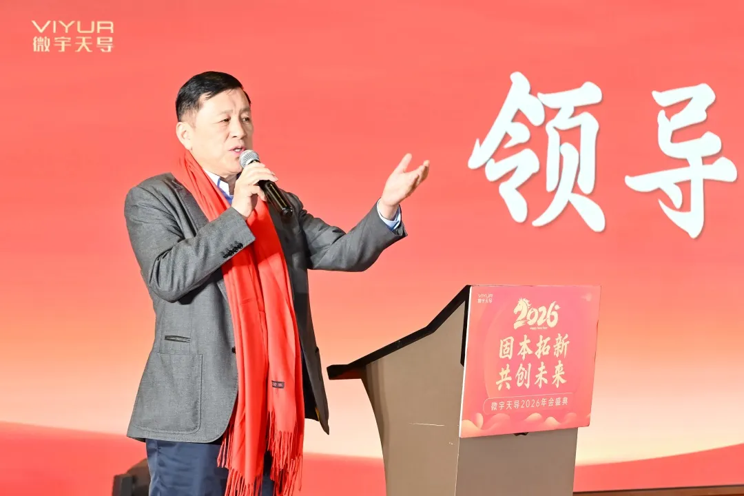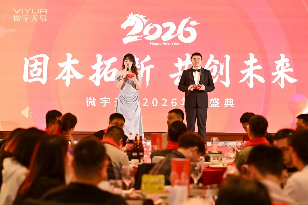 2026年2月12日,以“固本创新,共创未来”为主题的微宇天导年度表彰大会暨年会隆重举行。公司全体员工及特邀嘉宾140余人欢聚一堂,回顾2025年奋斗历程,共话2026年发展新篇。本次盛会既是对过去一年成绩的总结与表彰,更是凝聚共识、鼓舞士气、展望未来的重要契机。
