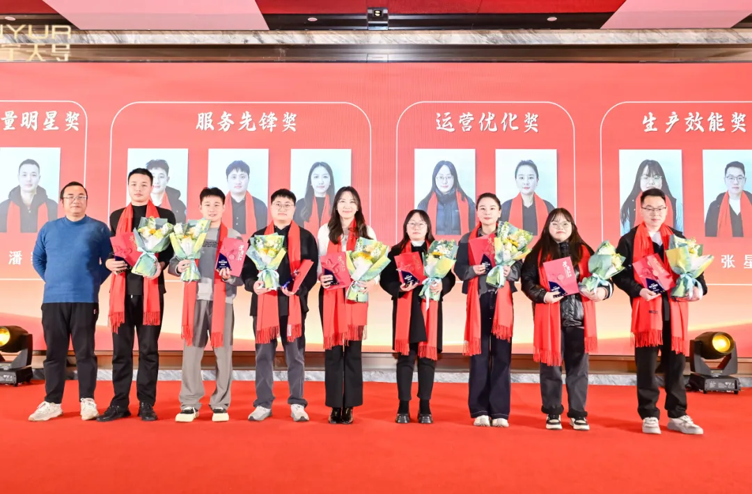 年会对2025年度涌现出的优秀团队与个人进行了集中表彰。奖项涵盖新锐成长、突出成果、兢业先锋、最佳协作、质量明星、服务先锋、运营优化、生产效能、技术创新、市场开拓、优秀员工、卓越管理及优秀团队等类别,全面覆盖公司各条战线。