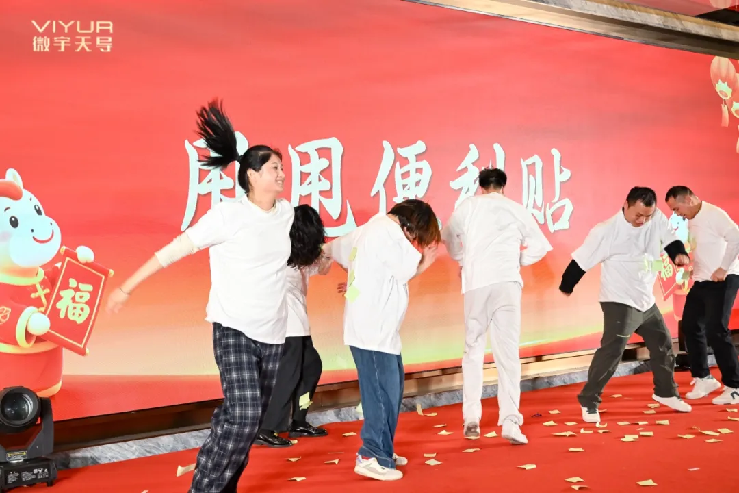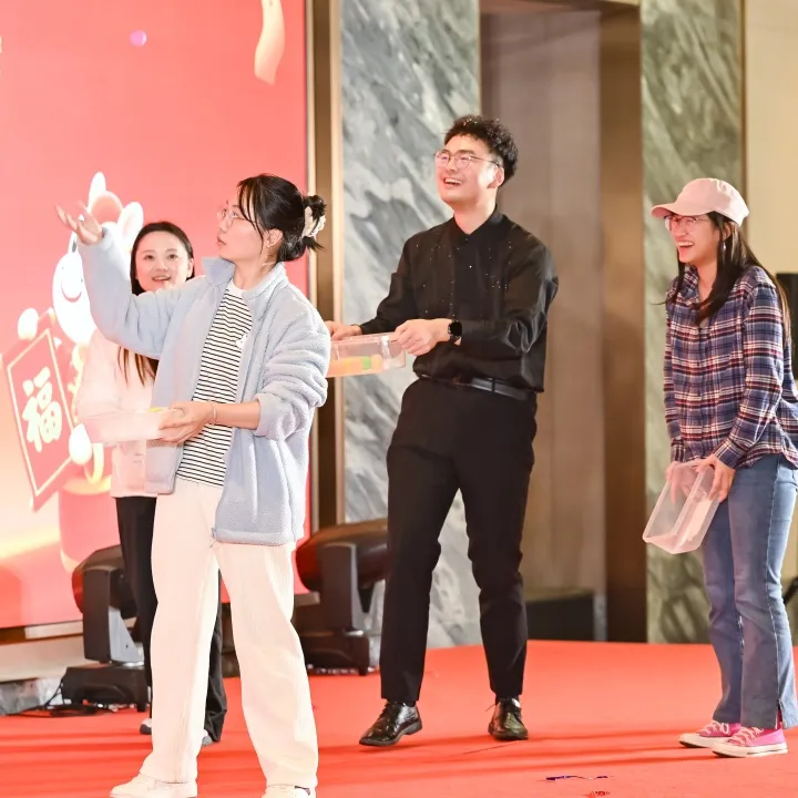 晚宴环节气氛轻松热烈,节目表演、互动游戏与抽奖活动穿插进行。员工自编自演的舞蹈、乐器演奏、歌曲等才艺展示,生动呈现出朝气蓬勃、团结向上的精神风貌。现场设置的趣味游戏与多轮抽奖环节,更不断将气氛推向高潮,在欢声笑语中进一步增强了团队凝聚力。